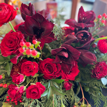 Decorate your table with a lush arrangement, locally sourced flowers arranged by our designers. Festive holiday centerpieces, order online for hand delivery to your door.